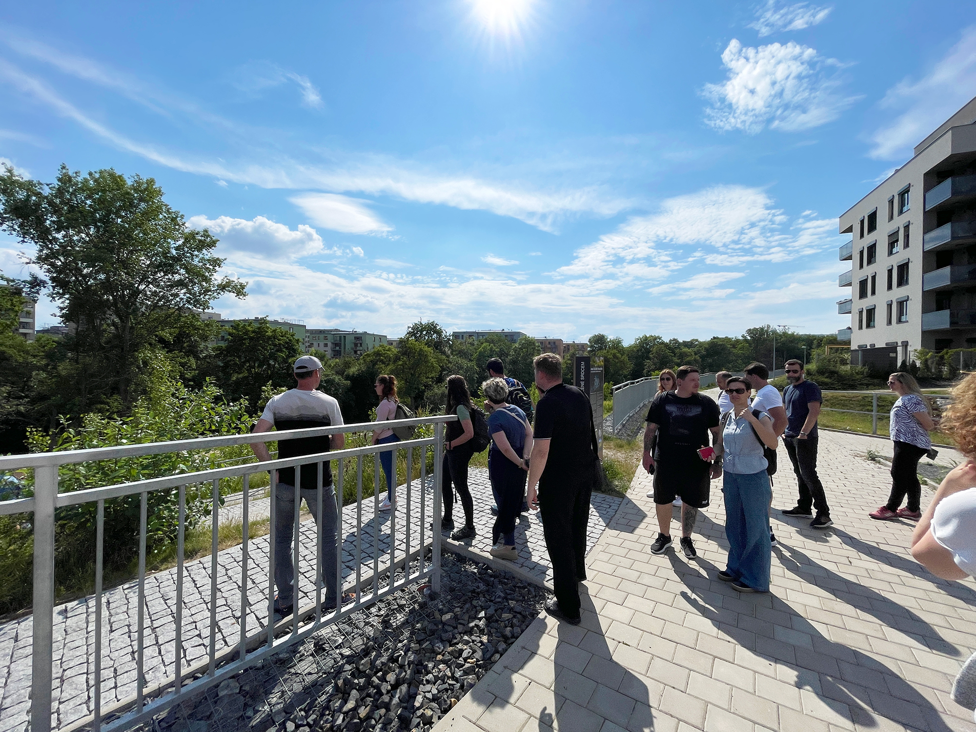 Ve středu 7. června se tak mohli účastníci převážně ze zahraničí (např. Chorvatsko, Slovinsko), ale i z Česka blíže seznámit se šetrným přístupem k nakládání s dešťovou vodou v našem projektu SUOMI Hloubětín, který představil výrobní ředitel YIT Stavo Petr Altmann. Ten zde návštěvníkům z řad arboristů, úředníků, ředitelů a zástupců organizací správy městské zeleně názorně odprezentoval realizovaná opatření – například centrální retenční nádrž či systém zatravněných retenčních koryt s přepady, prolehy a mělkými příkopy se vsakovací funkcí. Nevynechal ani revitalizovaný úsek toku říčky Rokytky, jejíž koryto jsme rozšířili a vybudovali jsme zde umělé mělčiny a meandry. Tím se zpomalil tok, což má za cíl zlepšit místní biodiverzitu. Jedná se ale jen o z mnoha benefitů implementace prvků v rámci zásad tzv. Low Impact Development. Důmyslně propracovaný systém efektivně pracuje s dešťovou vodou a zadržuje ji v krajině, čímž dlouhodobě podporuje udržitelnost ve městě. Zachycenou vodu zároveň využíváme na zalévání zeleně v areálu.