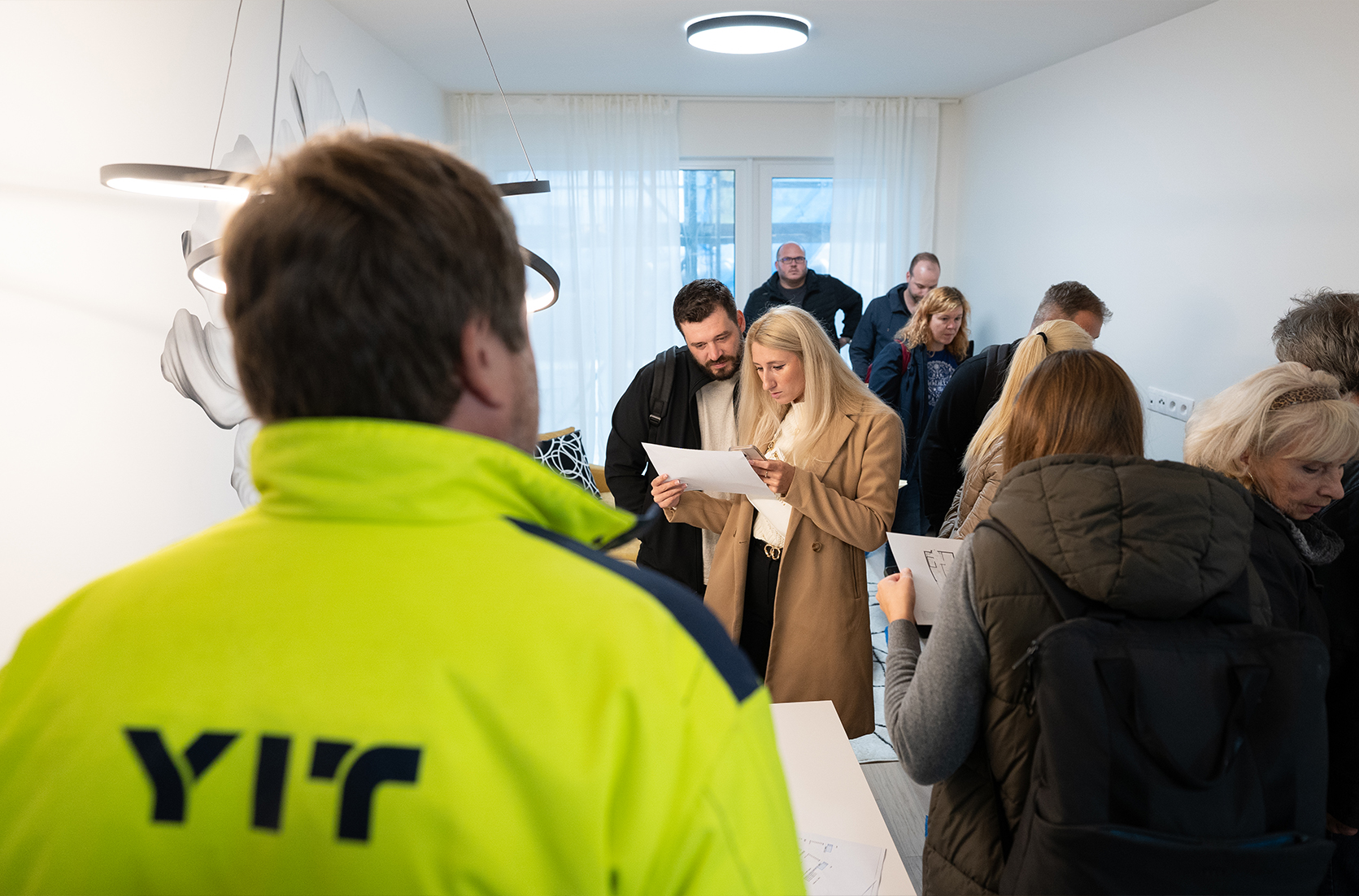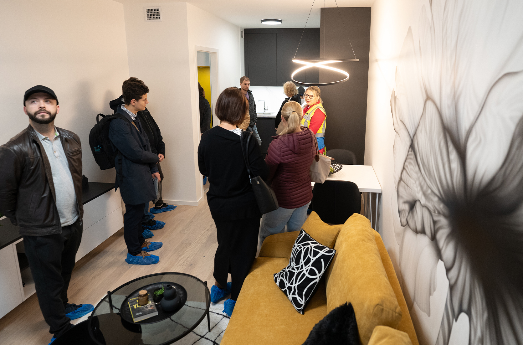 Po příchodu jsme návštěvníky přivítali welcome drinkem a drobným občerstvením, dámy jsme navíc potěšili květinou. Poté si již zájemci měli možnost do detailu prohlédnout vzorový byt, který je nově přidaný do prodeje, a to včetně jeho vybavení. Po celou dobu jim samozřejmě byli k dispozici zástupci YIT, s nimiž mohli pohovořit a získat podrobné informace o aktuálně dostupných jednotkách i celém projektu.