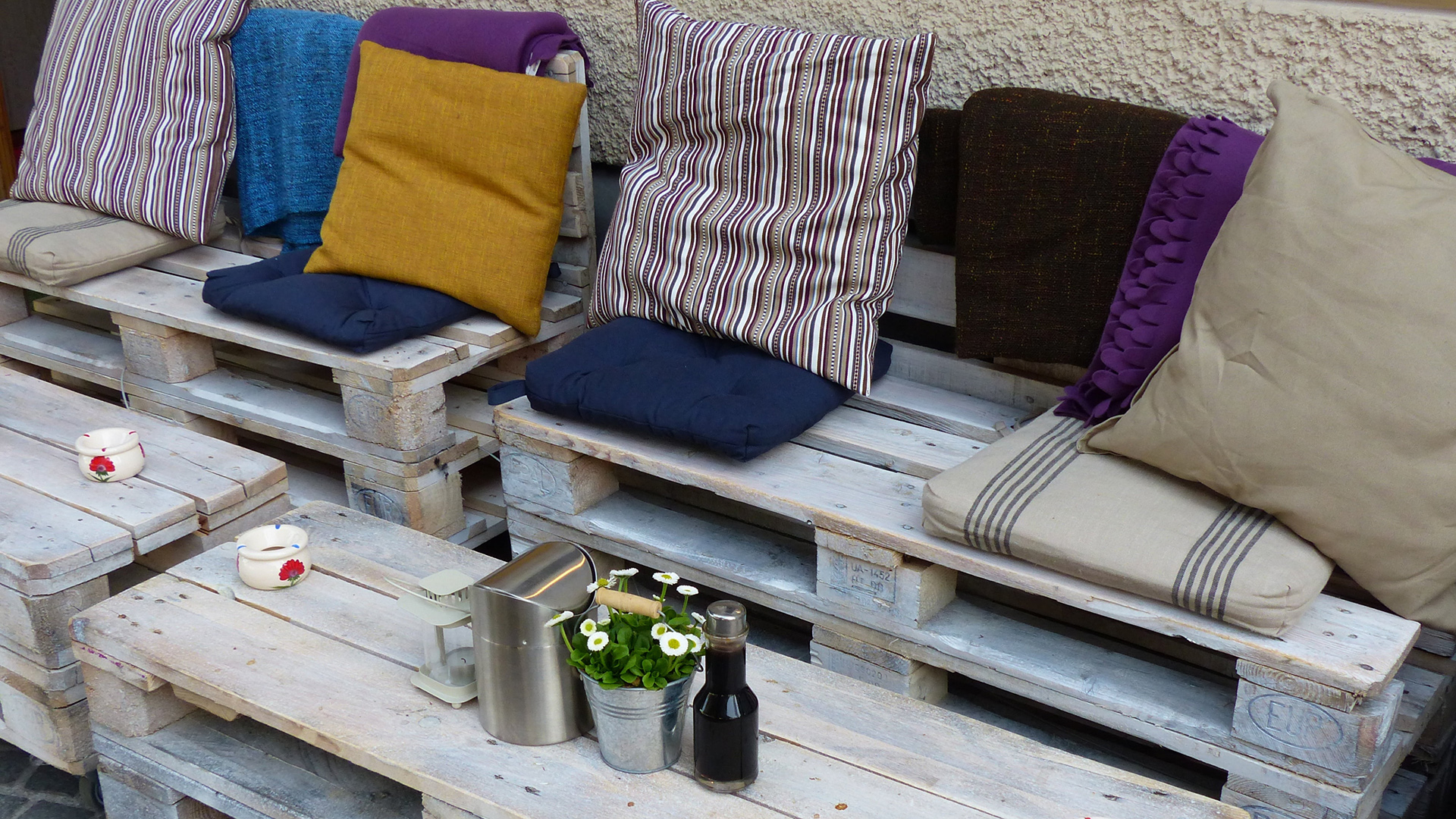 Obrovským plusem palet je i finanční nenáročnost. Záleží samozřejmě na materiálu a velikosti, ale standardně se za jeden kus platí 100 až 300 korun. Zkuste se klidně zeptat v supermarketech, stavebninách, sběrných dvorech nebo u známých a dostat je třeba zadarmo. Dejte ovšem pozor na ty vyloženě poškozené a staré – bude se vám s nimi těžko pracovat a také mohou obsahovat hnilobu či škůdce. Vyhněte se i těm se značkou MB, neboť to značí ošetření metylbromidem, nebezpečným a škodlivým plynem. Ty nejvhodnější pro výrobu nábytku nesou certifikaci s označením HT (Heat Treatment) a DB (Debarked). K hojně užívaným druhům patří tzv. europalety, které se používají k transportu zboží po Evropě a najdete na nich označení EUR nebo EPAL. Jejich normalizovaný rozměr bývá 120 x 80 x 14,4 cm.
