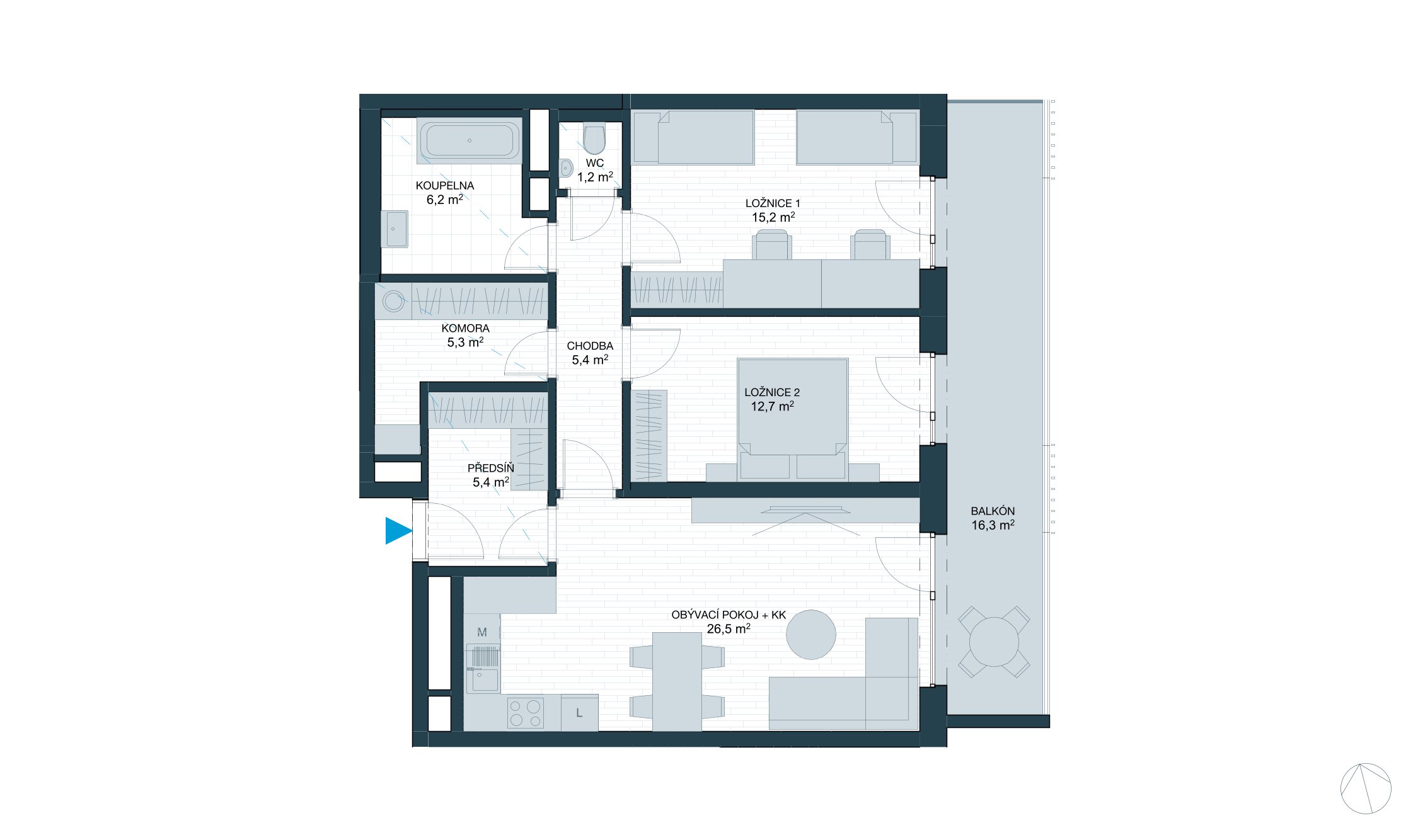 B3 406, 3+kk, 85,7 m²